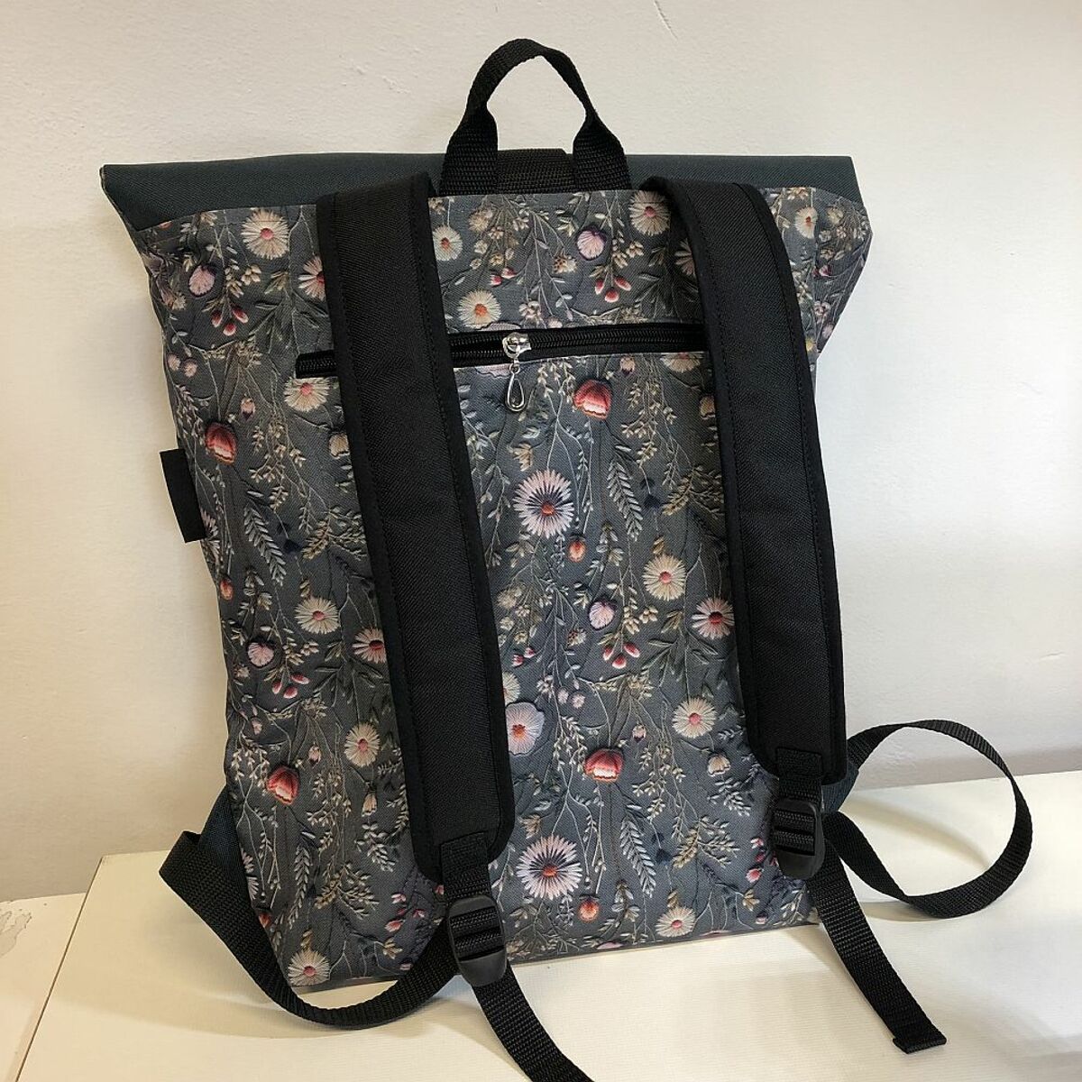 Batoh má dvě kapsy na zip a přepážku/kapsu uprostřed vnitřního prostoru (třeba na notebook)