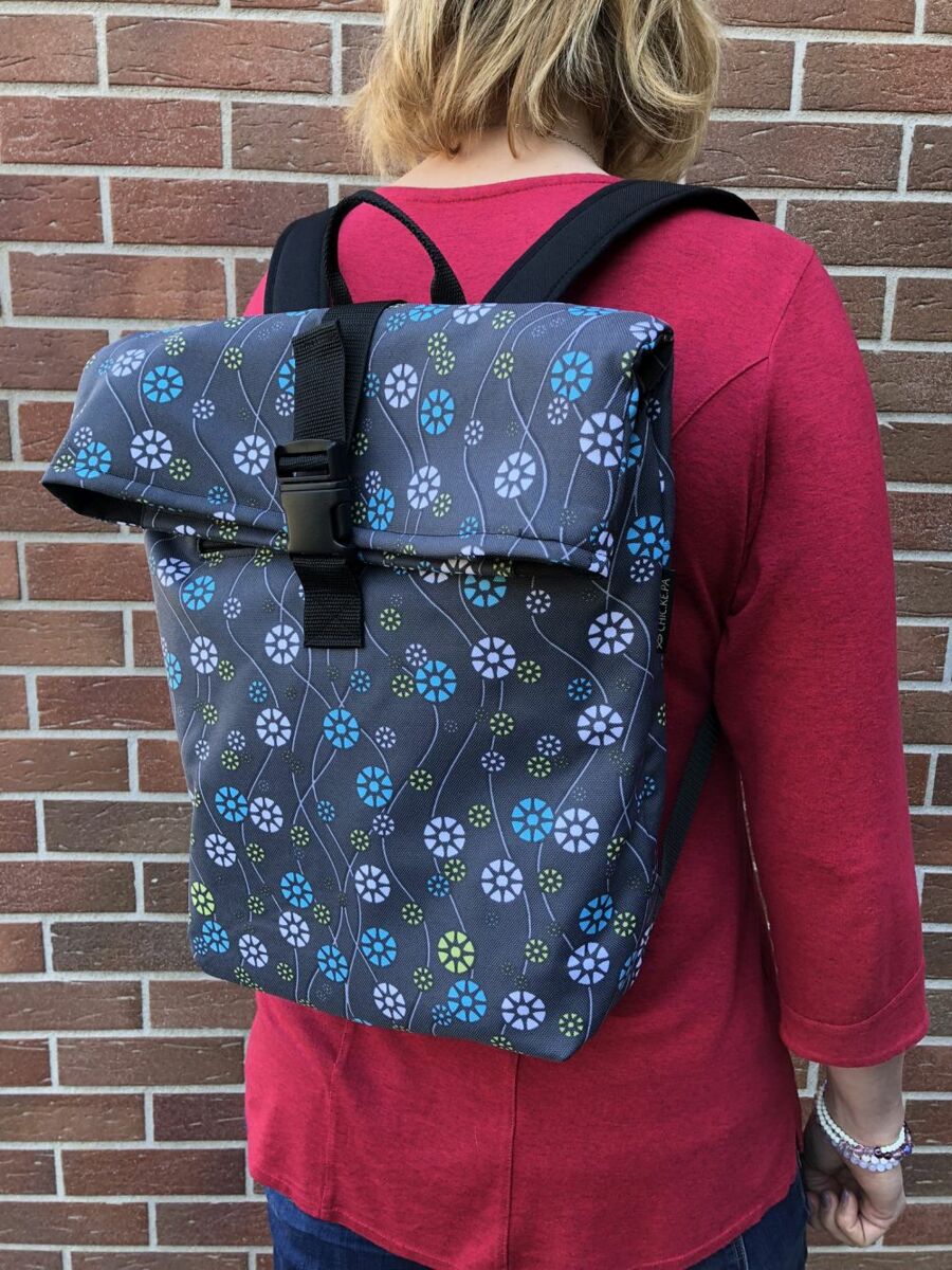 - barva látky: šedá s modrými a bílými kvítky