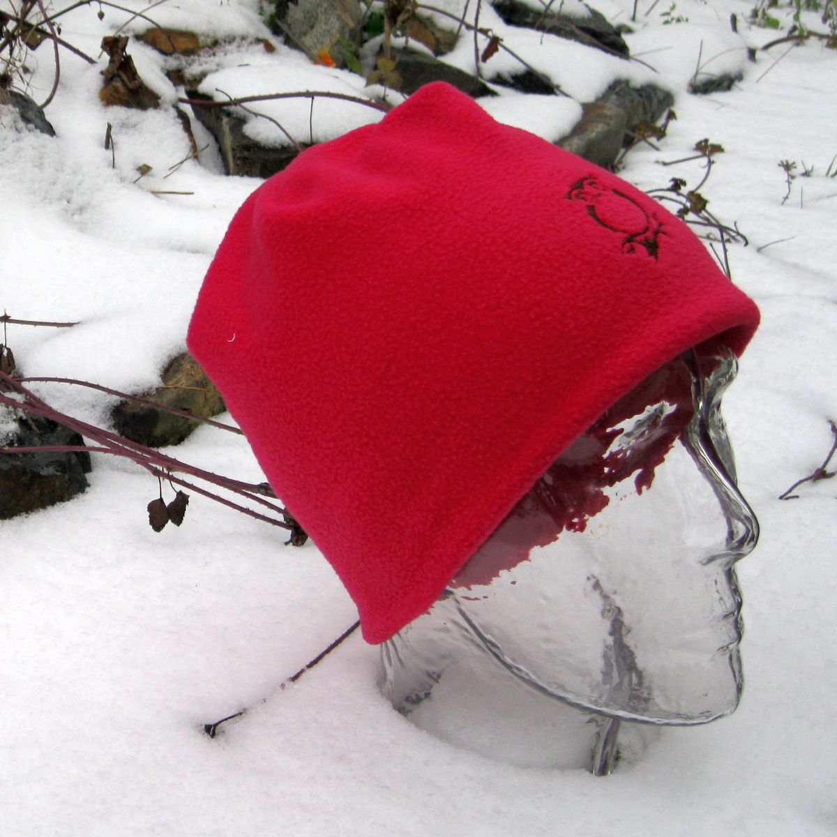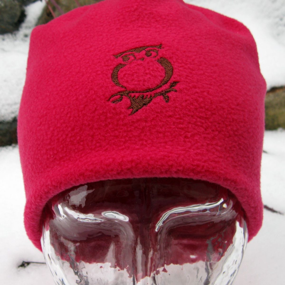 Čepice tmavě růžová, dvojitá, s výšivkou sovy