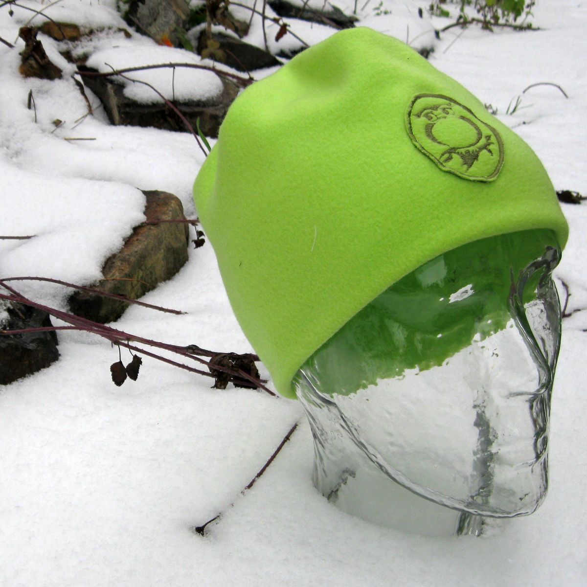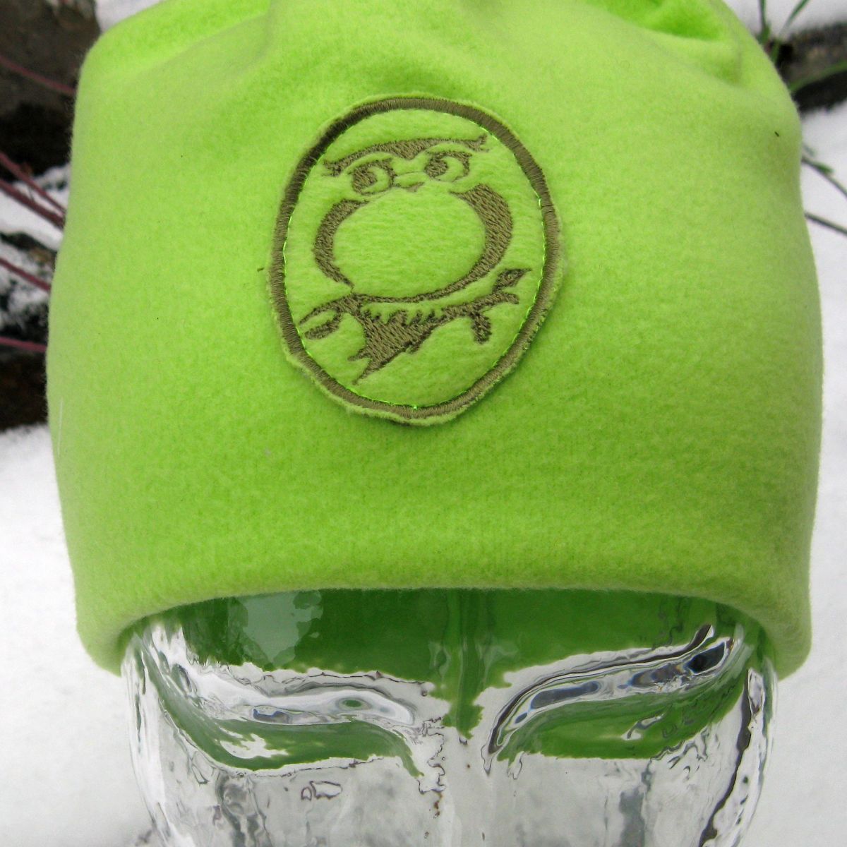 Čepice světle zelená, dvojitá, s výšivkou sovy