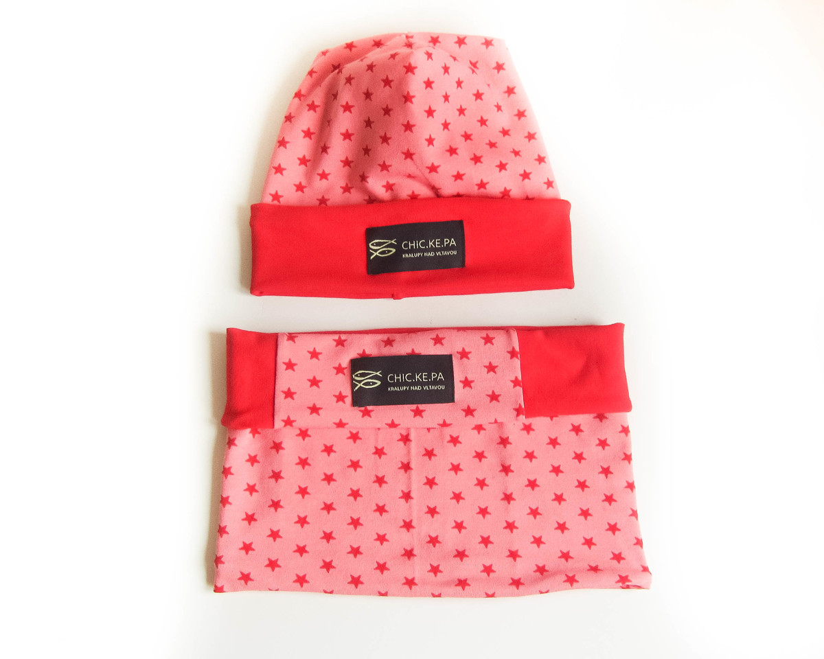 Sada čepice a nákrčník - růžová