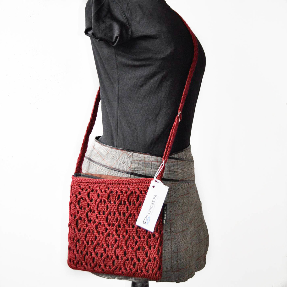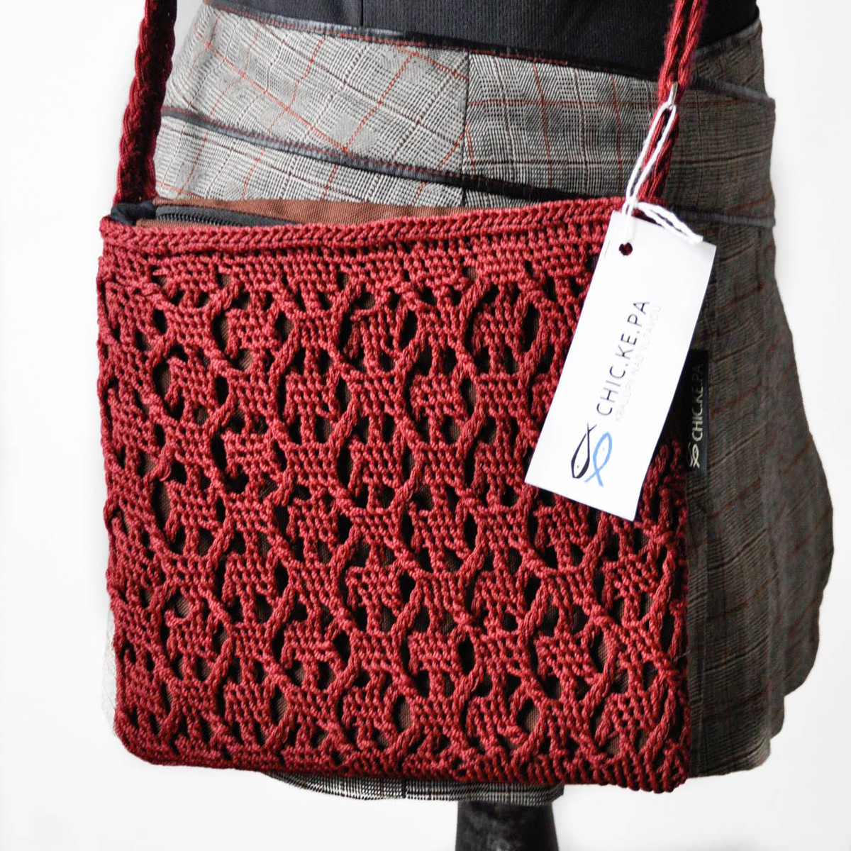 Šitá kabelka - zdobená technikou krosienky (pletení na rámu).