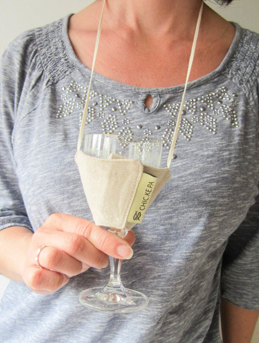 Účastníte-li se rádi ochutnávek vína, jistě se vám již přihodilo, že se v okolí vyskytovali i stánkaři a zrovna když máte v ruce plnou sklenku, vidíte ve stánku něco, co byste si rádi prohlédli. Pro tuto situaci je naše koštovačka jako stvořená - sklenku do ní umístíte, zavěsíte okolo krku a ruce máte volné!